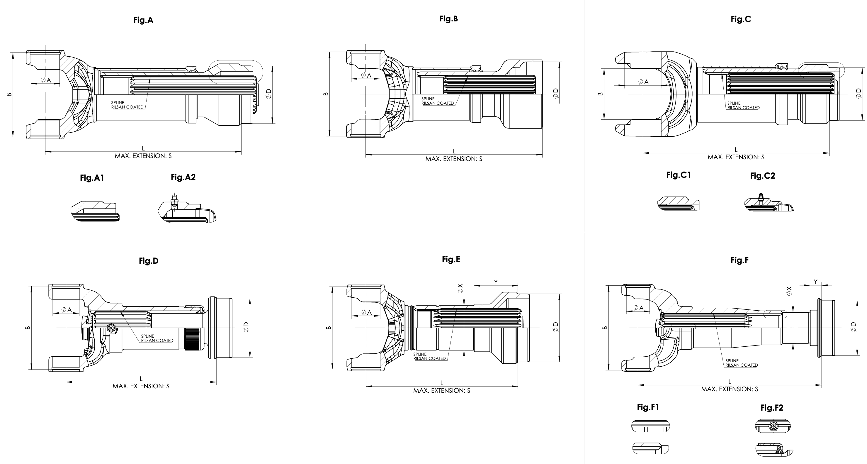 | PARÇA NO / PART NO | FIG | ØA | B | L | SPLINE | S | ß° | BORU / TUBE | ØD | X | Y | ISTAVROZ / UJ |