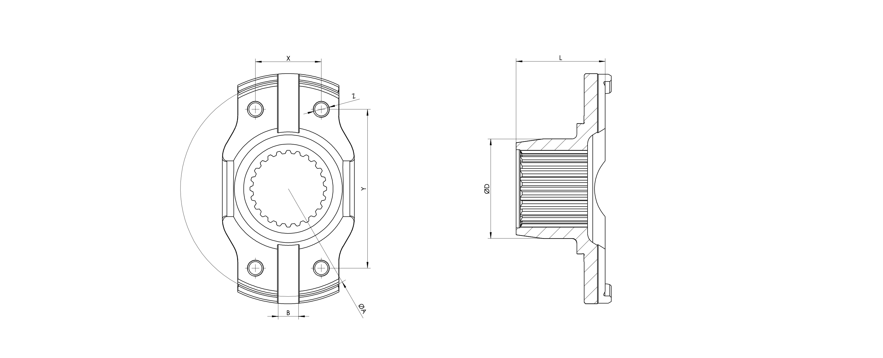 | PARÇA NO / PART NO | ØA | B | X | Y | Z | L | SPLINE | Spline Lenght | ØD | ß° | ISTAVROZ / UJ |